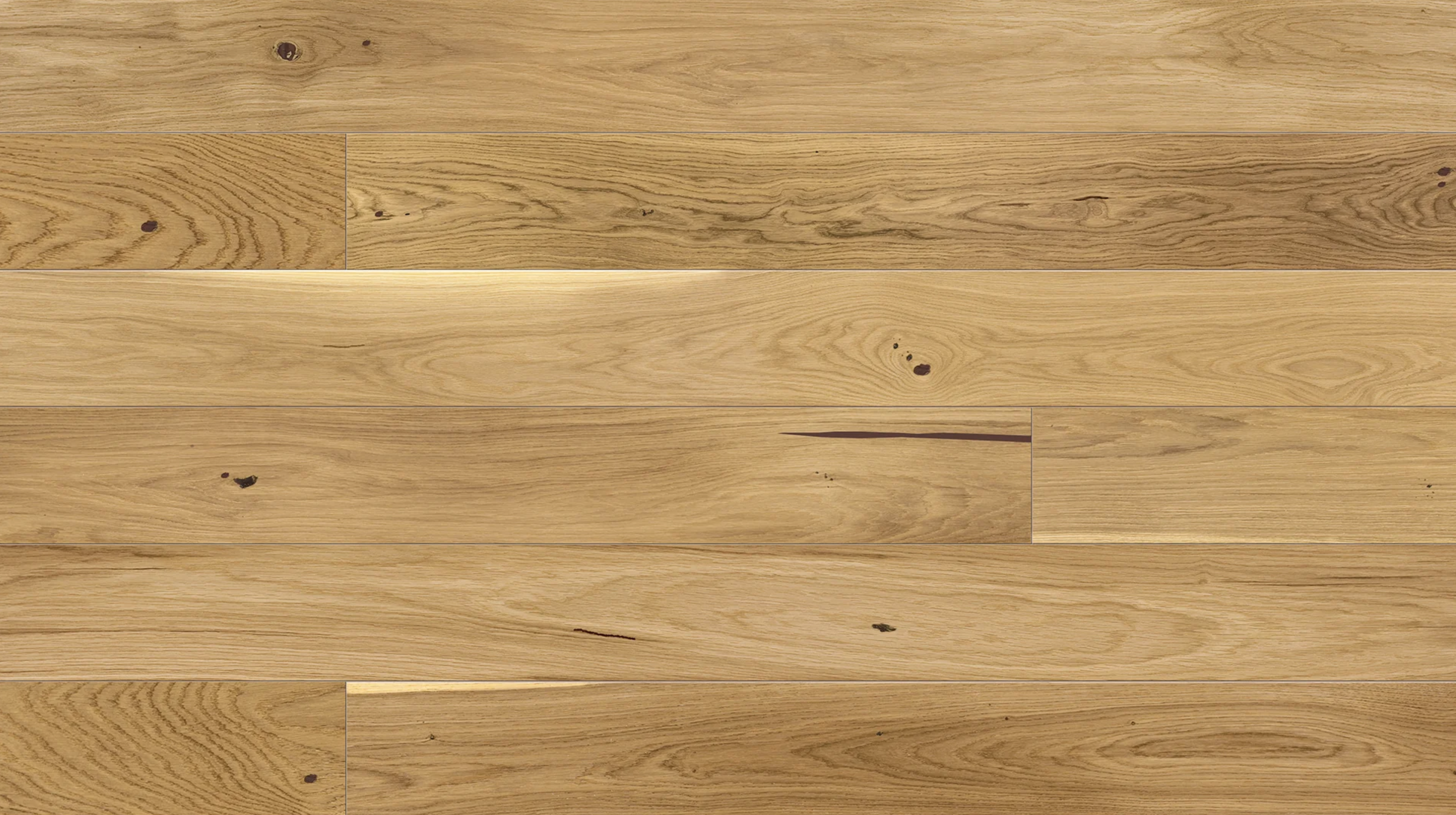 El biselado de las tablas le da carácter a la Ventana Azul Grande. La belleza natural de la madera de roble se realza mediante el uso de laca mate. Medida de 2200x180x14mm